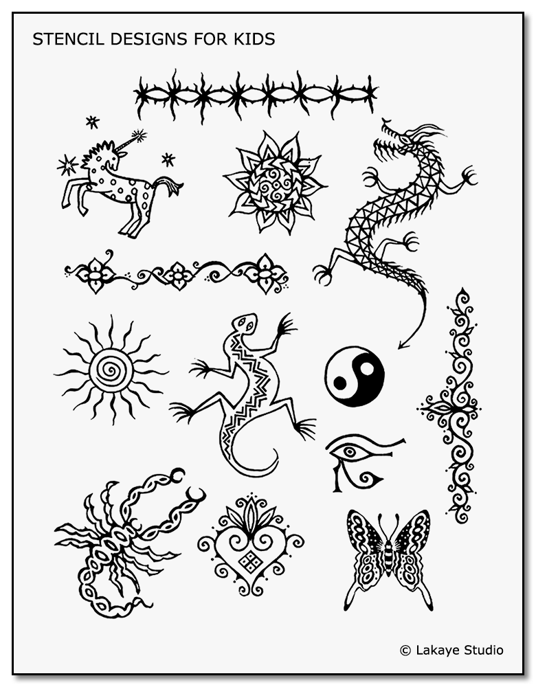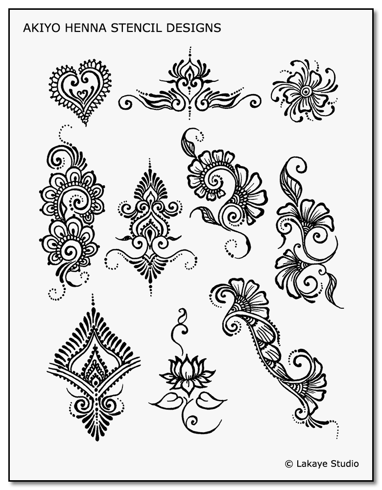 And the best part of all? These collections of reusable henna temporary body art stencil transfers are now 100% FREE! Just click the thumbnail images for a preview of each sheet; or click the “Download” button to view/download a printable PDF. (And for even more free stencil collections, please see our Freebies page.)